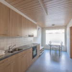 Küche: Allgemeinküche | Kochutensilien | privater Kühlschrank | Vorratsfach mit Geschirr/Besteck.